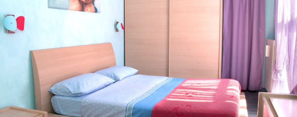 La camera doppia rappresenta in pieno lo stile del B&B Thousand Colors, è ricca di colori che ne esaltano ogni angolo e di un piccolo balcone che rende l'ambiente ancor più luminoso. Mobili in legno, pareti azzurre e tendaggi viola regalano la giusta vivacità, trasmettendovi una sensazione di benessere in grado di farvi sentire a casa. La camera comprende un letto matrimoniale, un armadio a 2 ante, un comodino ed una cassettiera.